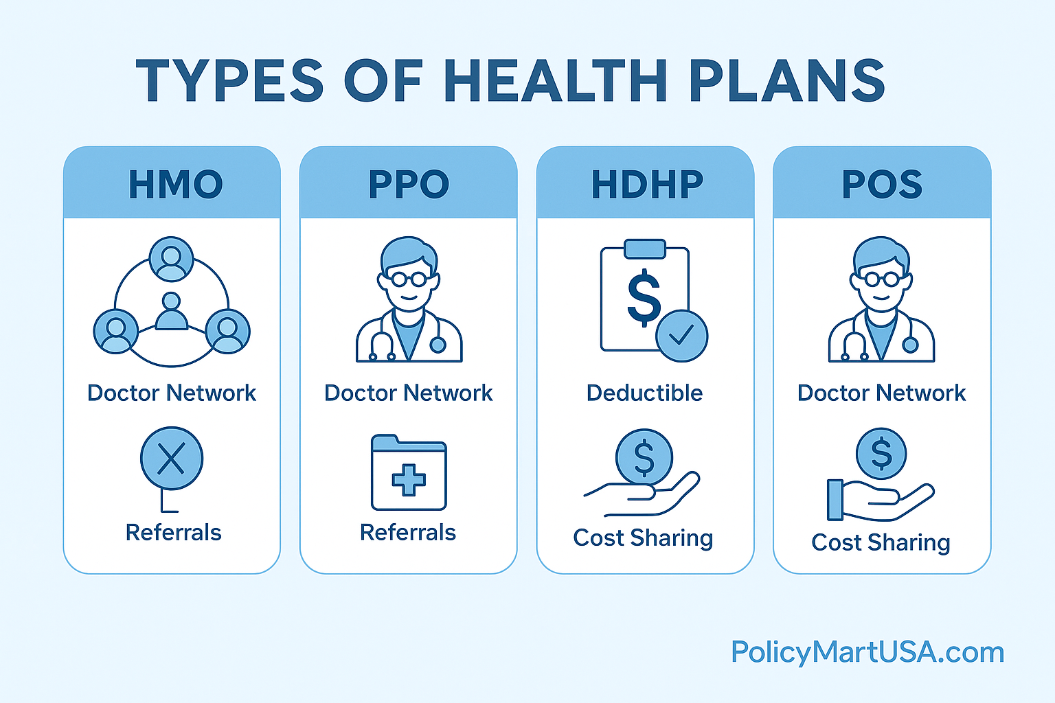 Health Insurance Plan Types Explained (HMO, PPO, POS, HDHP)